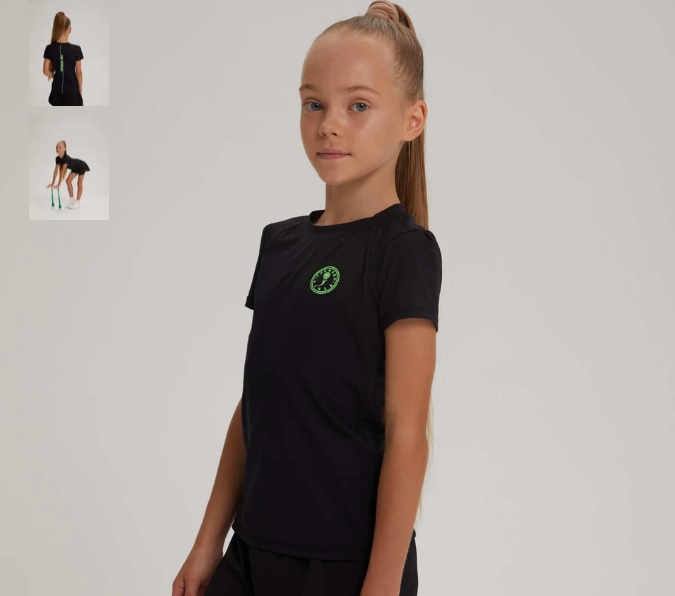 Футболка спортивного назначения для занятий гимнастикой для девочек черная FORWARD by VINER. Состав:88% полиэстер, 12% эластан, 155 г/м кв.  Производство: Китай.