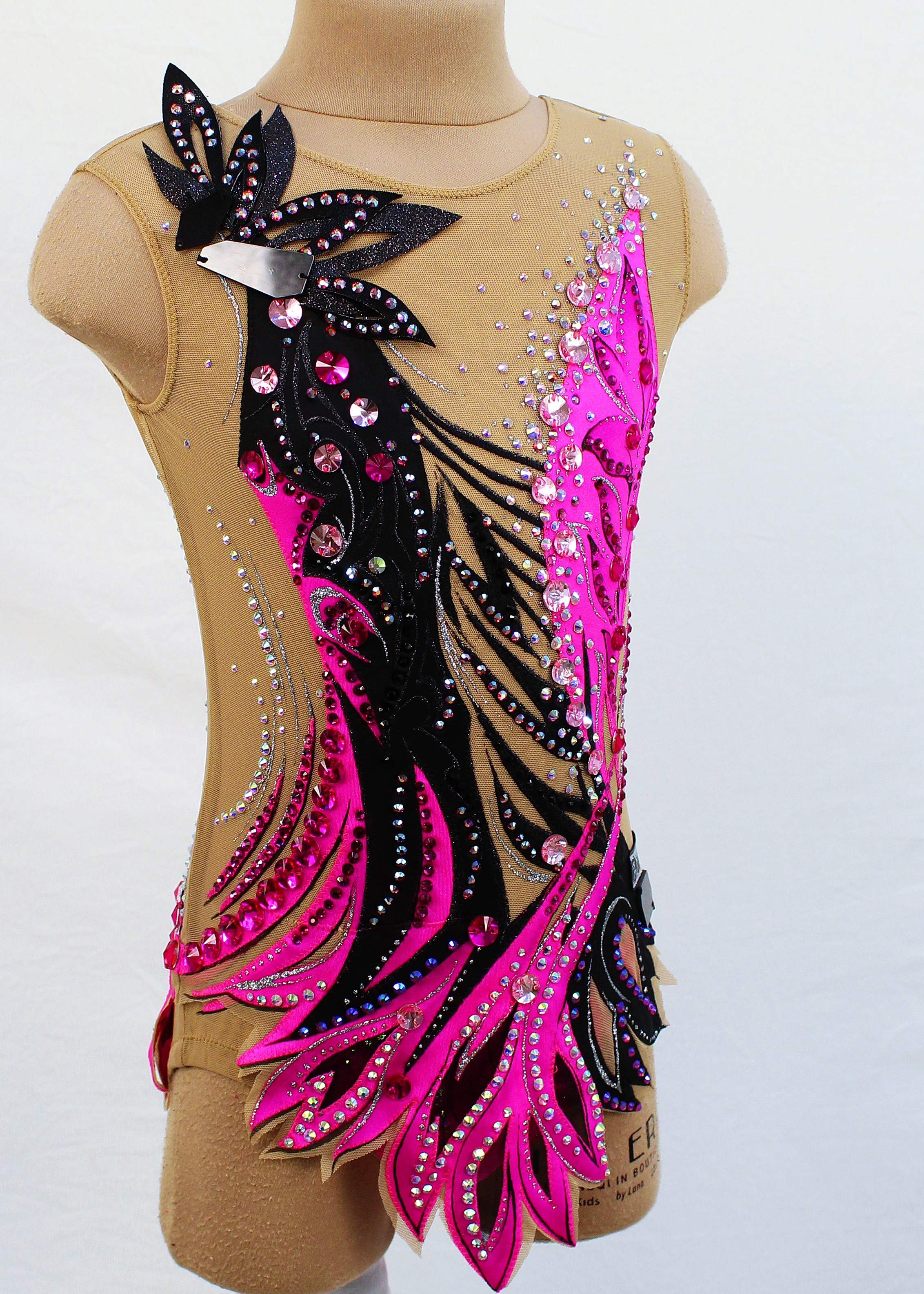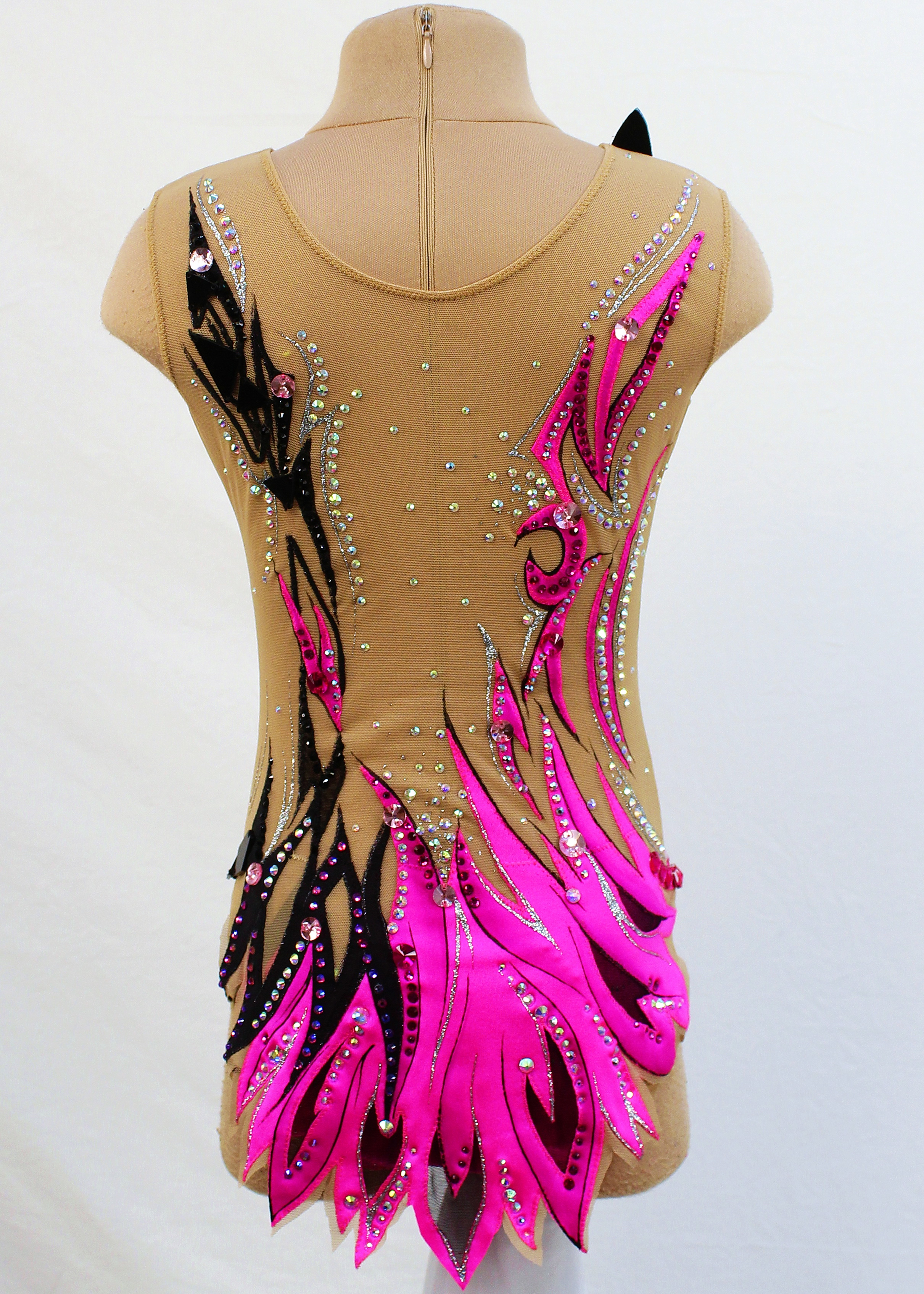 На купальнике использовано 1140 клеевых, 60 крупных пришивных страз и 10 зеркал.