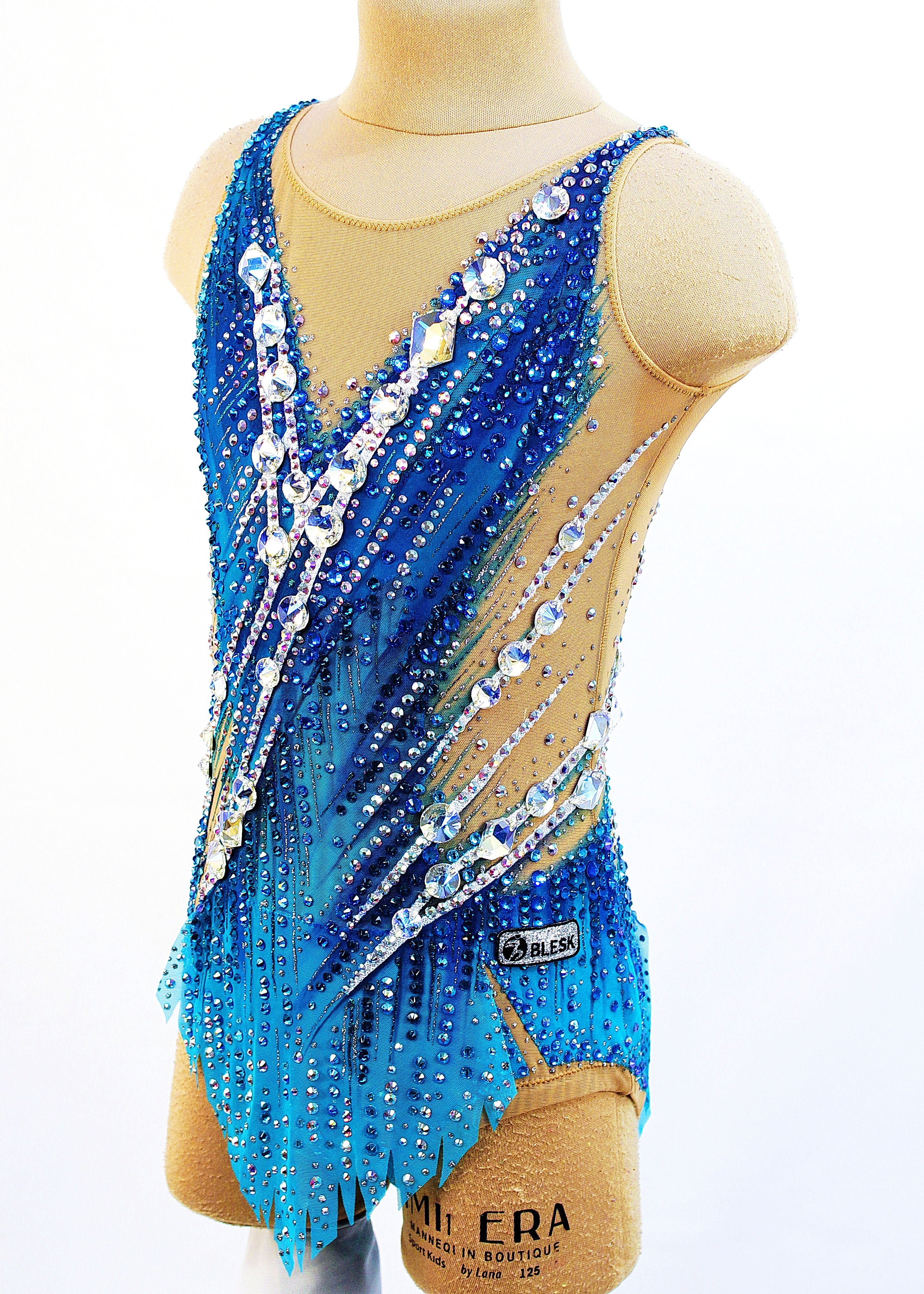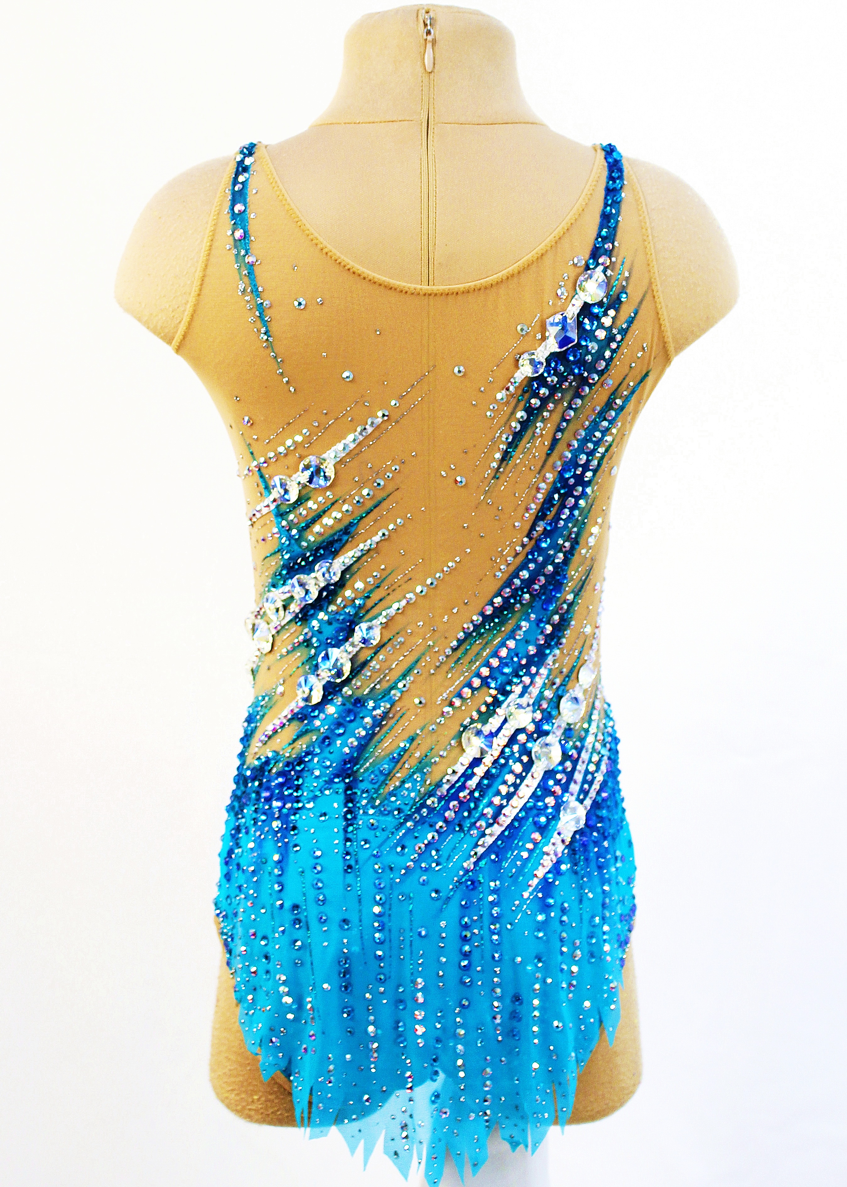 На купальнике использовано 2220 клеевых и 7 крупных пришивных страз.