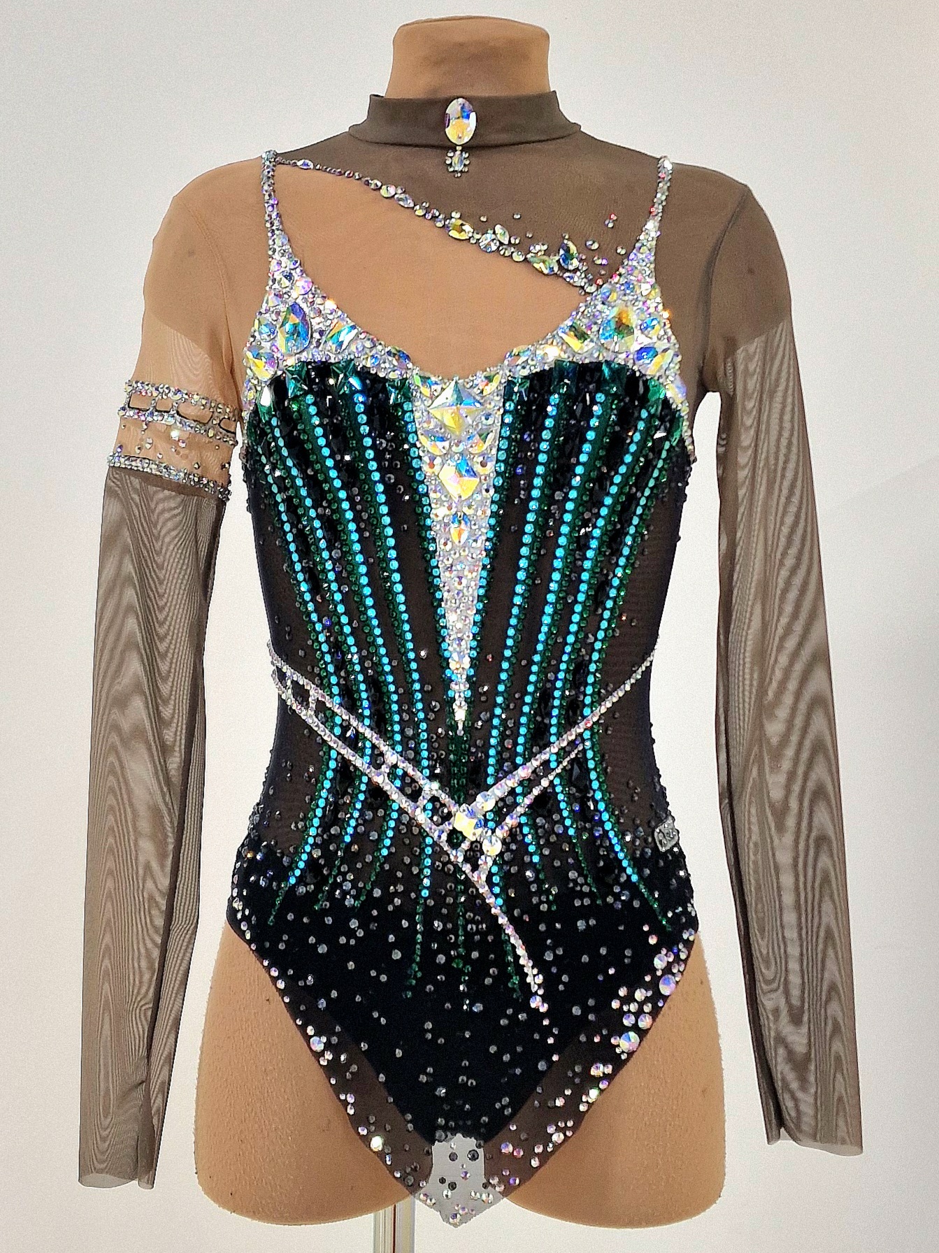 На купальнике использовано 5261 клеевых и 137 крупных пришивных страз.