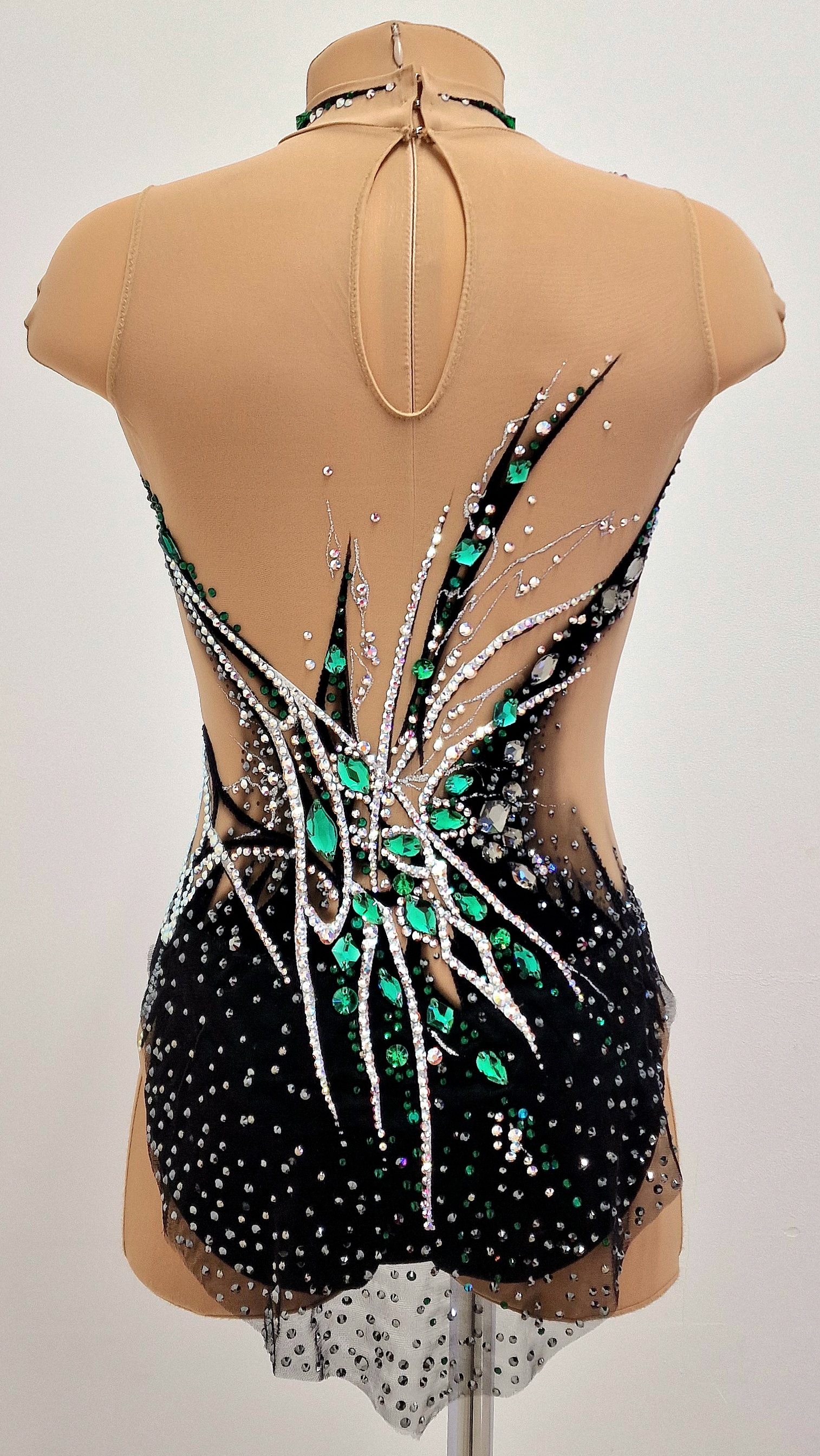 На купальнике использовано 3370 клеевых и 89 крупных пришивных страз.
