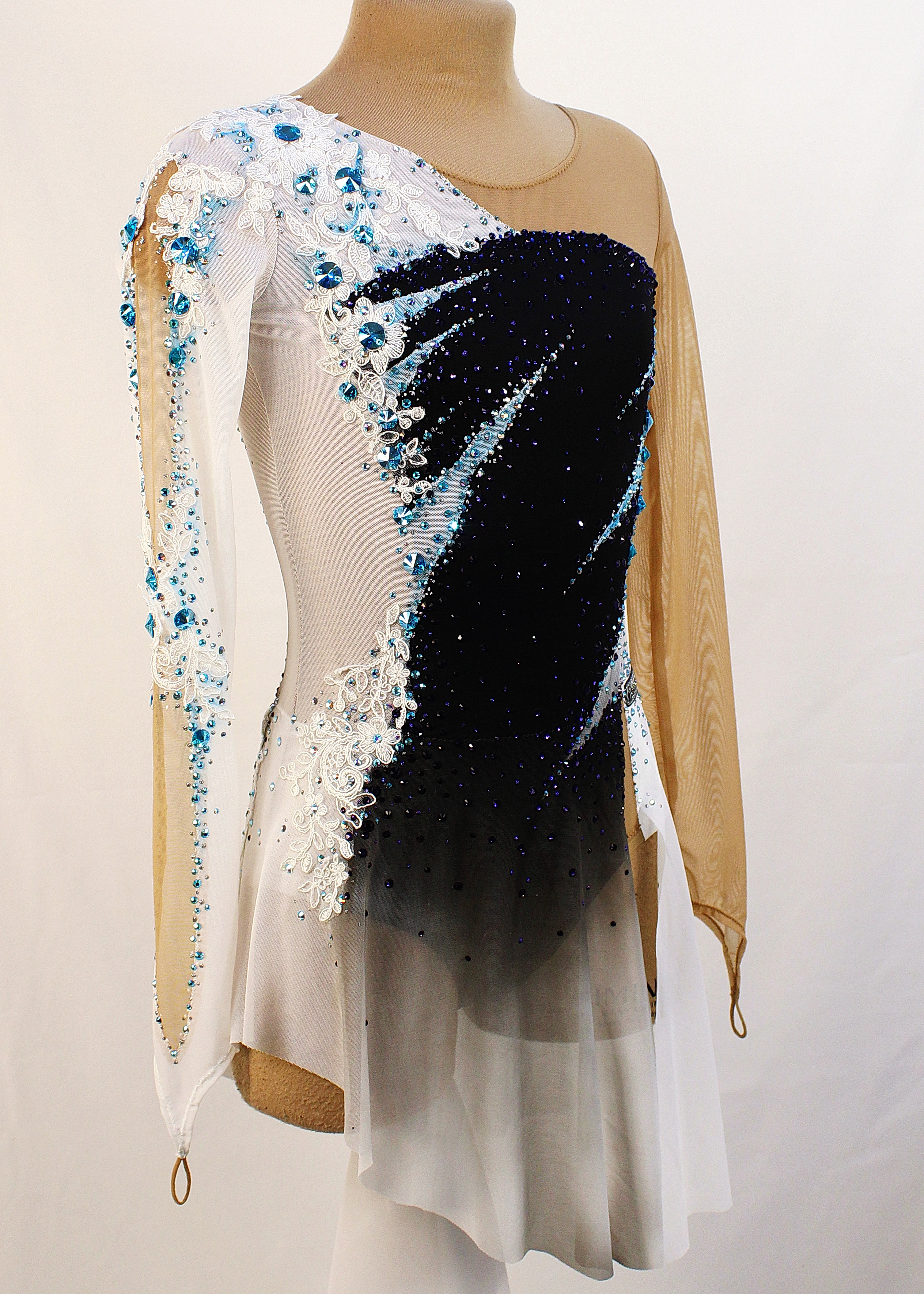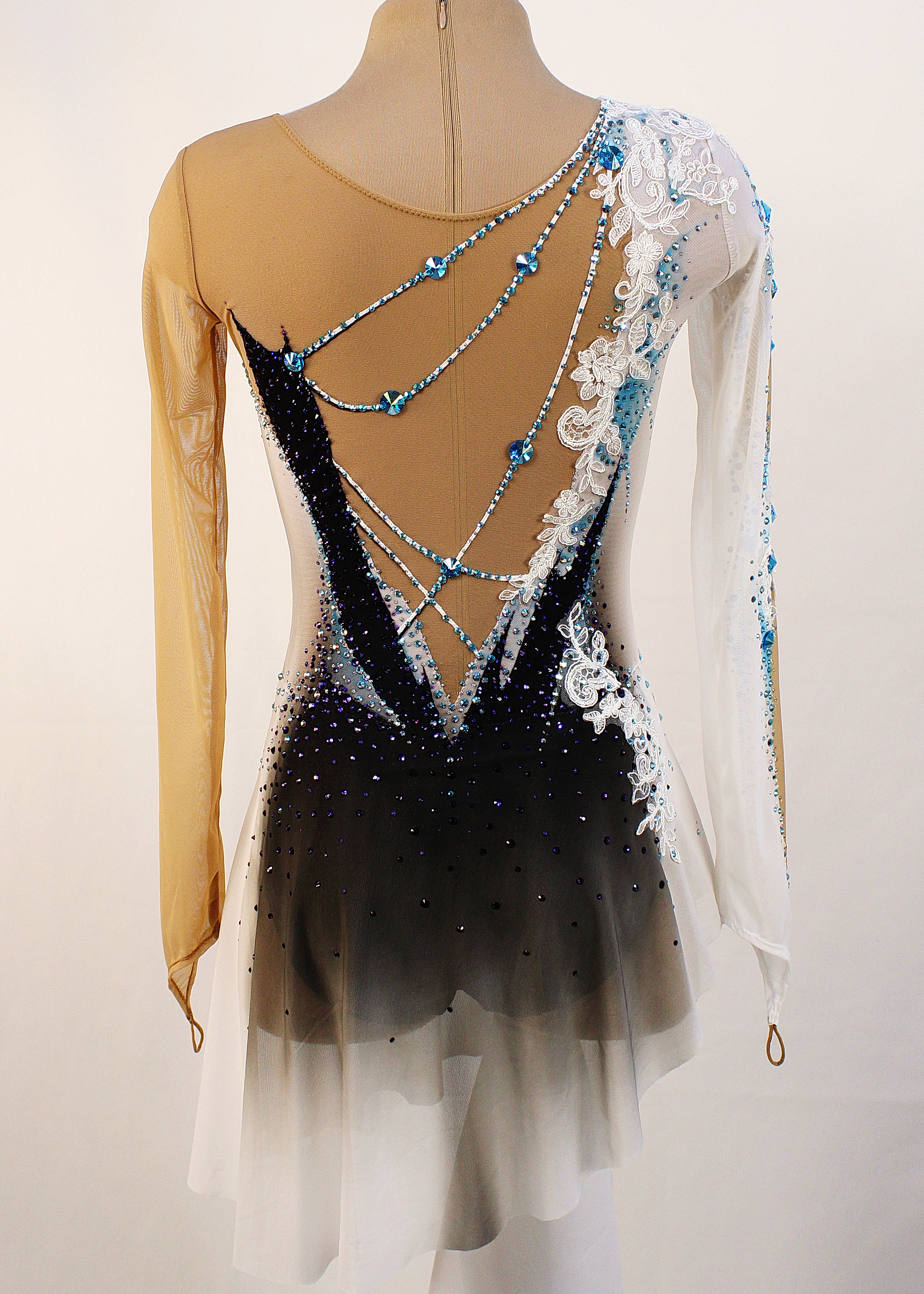 На купальнике использовано 1880 клеевых и 36 крупных пришивных страз.
