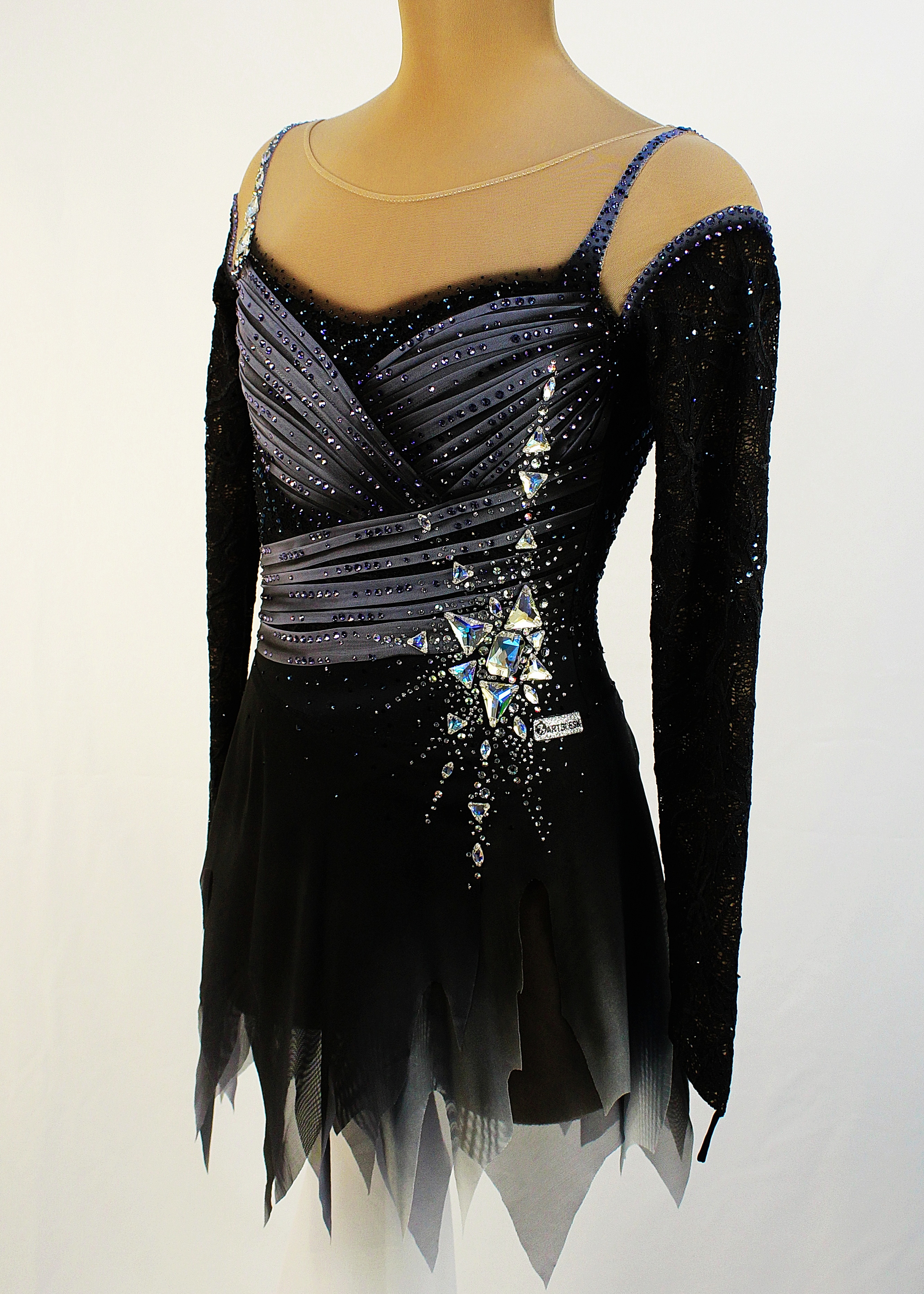 На платье использовано 1940 клеевых и 45 крупных пришивных страз.