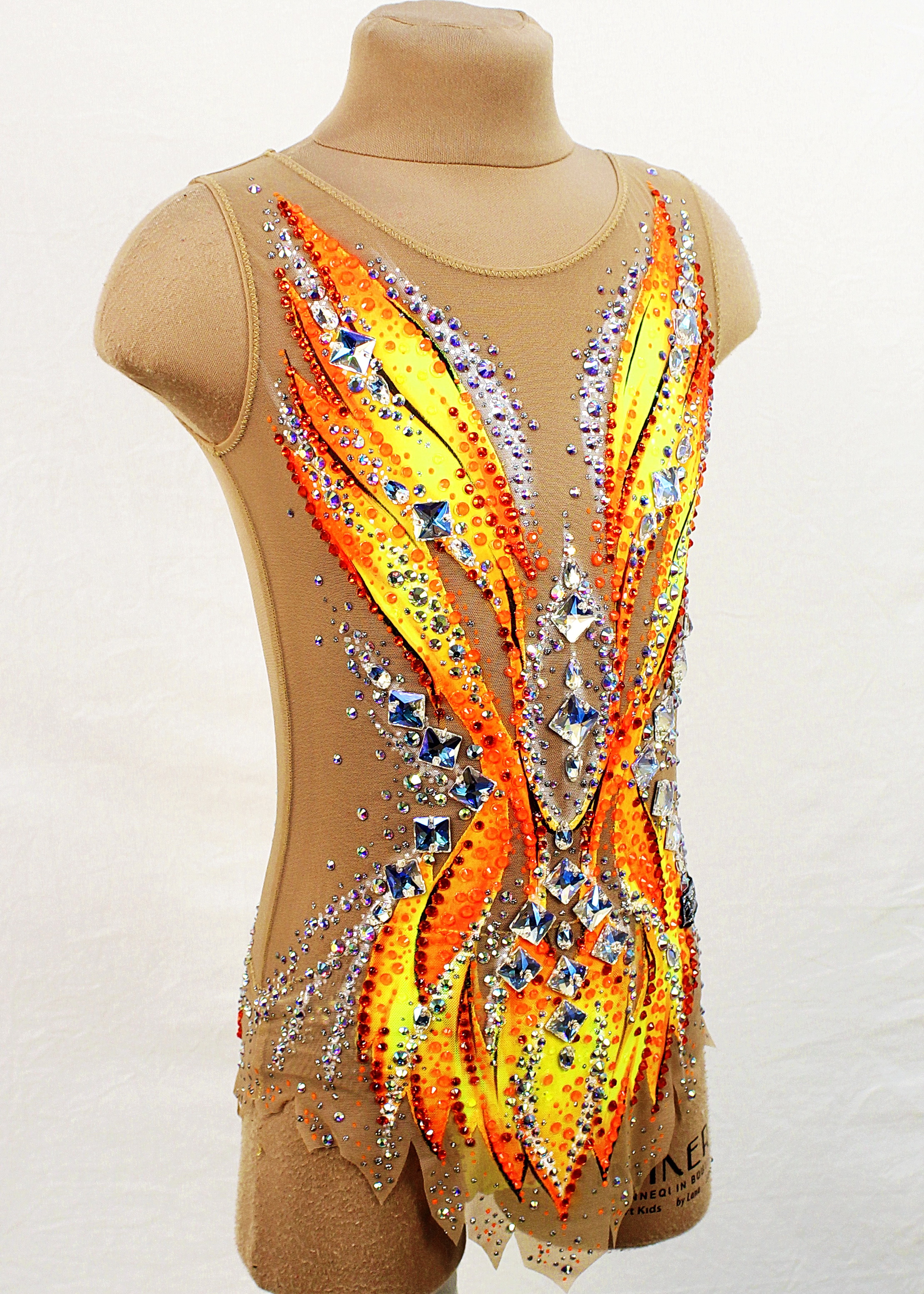 На купальнике использовано 2190 клеевых и 64 крупных пришивных страза.
