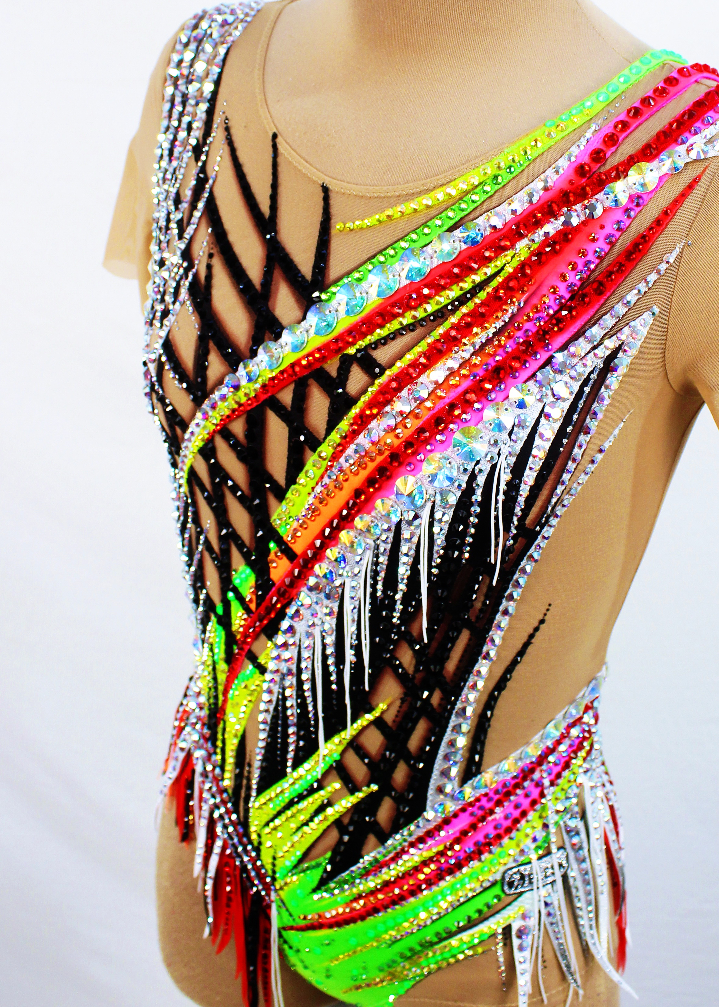 На купальнике использовано 5690 клеевых и 60 крупных пришивных страз.