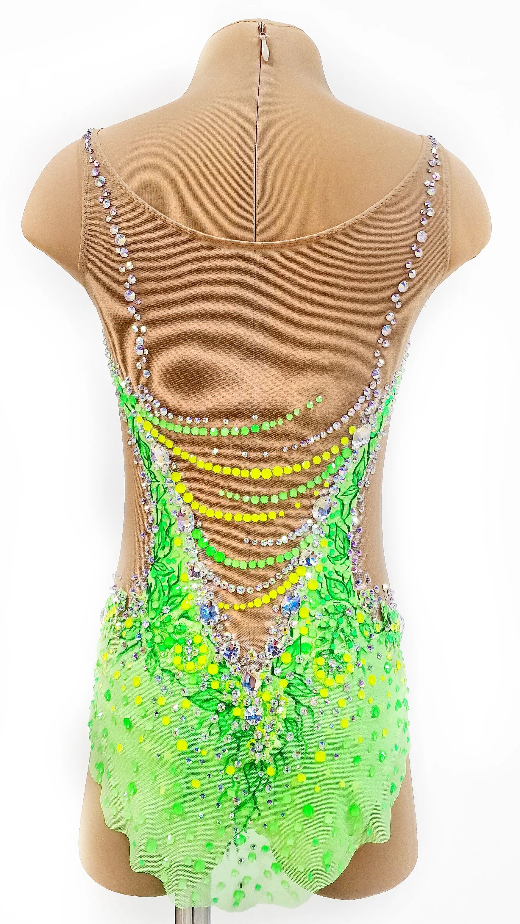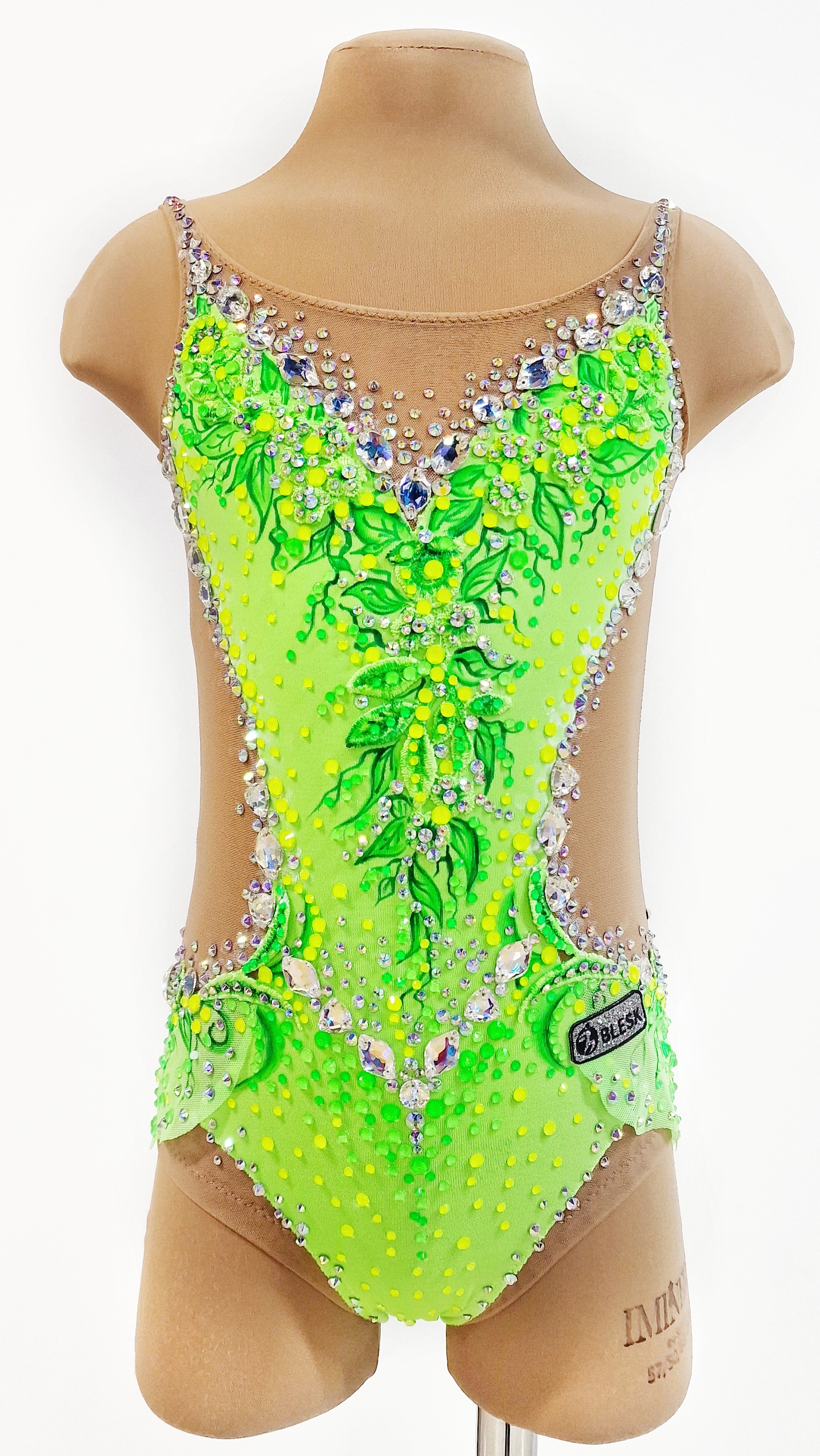 На купальнике использовано 2250 клеевых и 50 крупных пришивных страза.