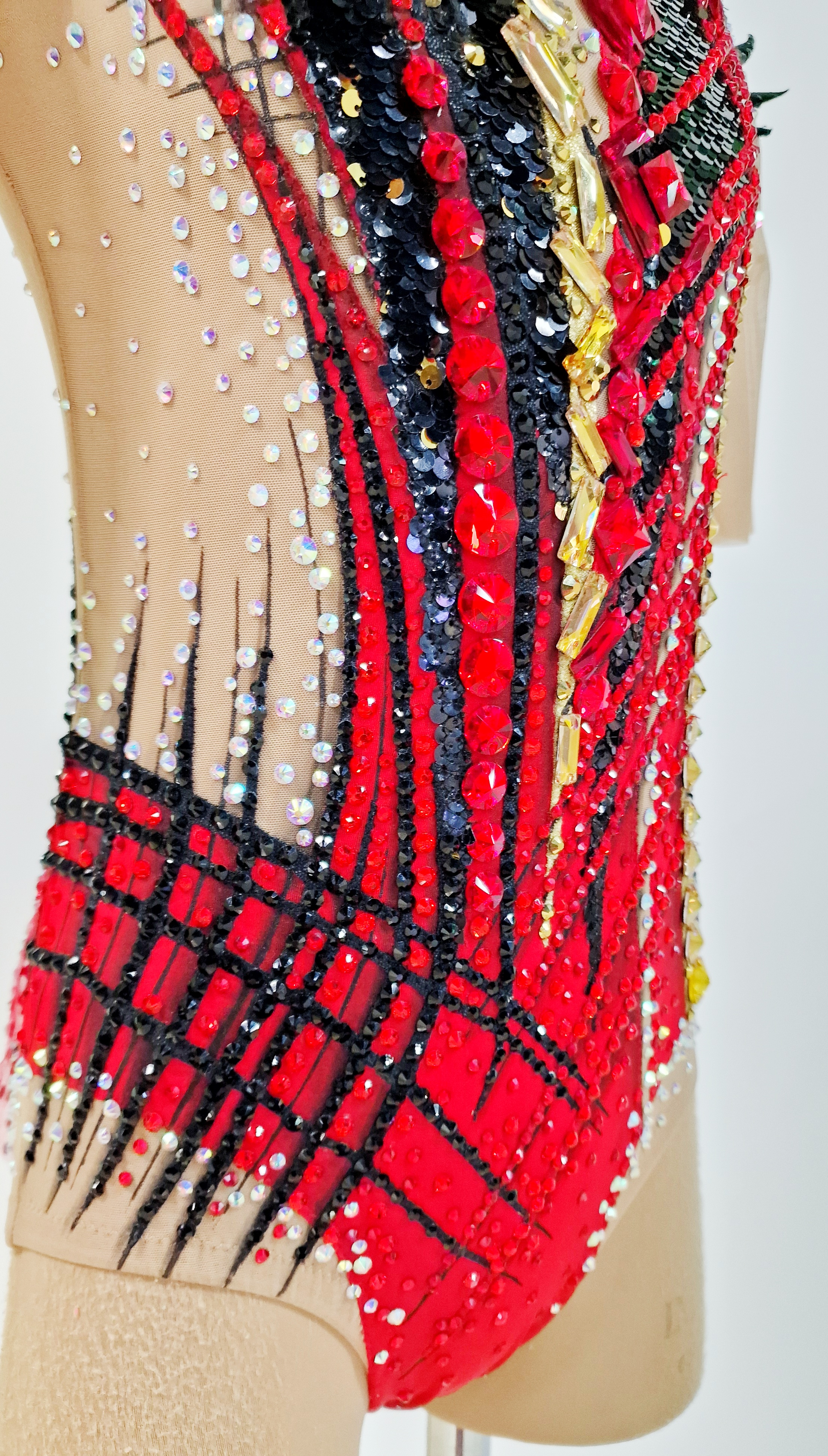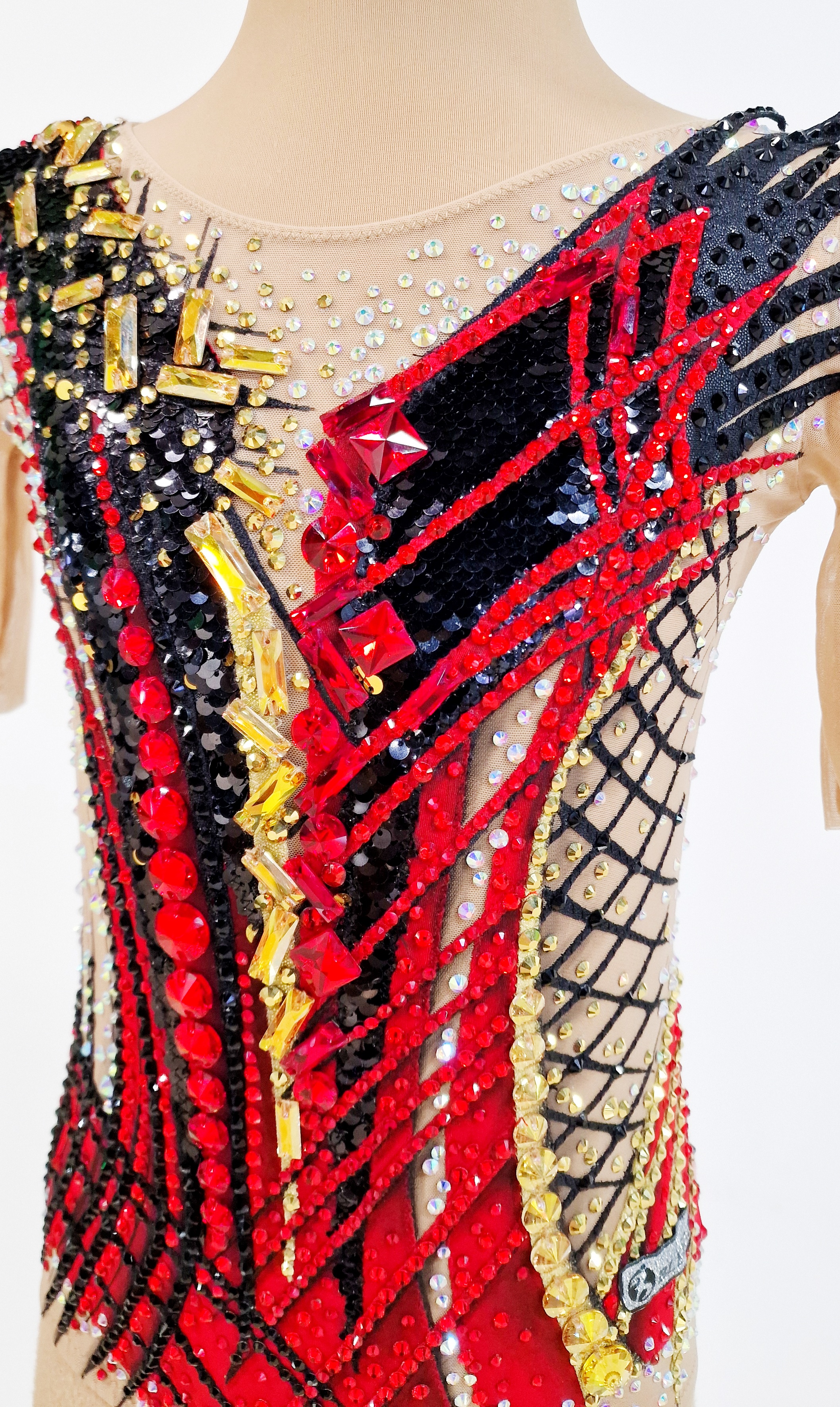 На купальнике использовано 4210 клеевых, 90 крупных пришивных страз.