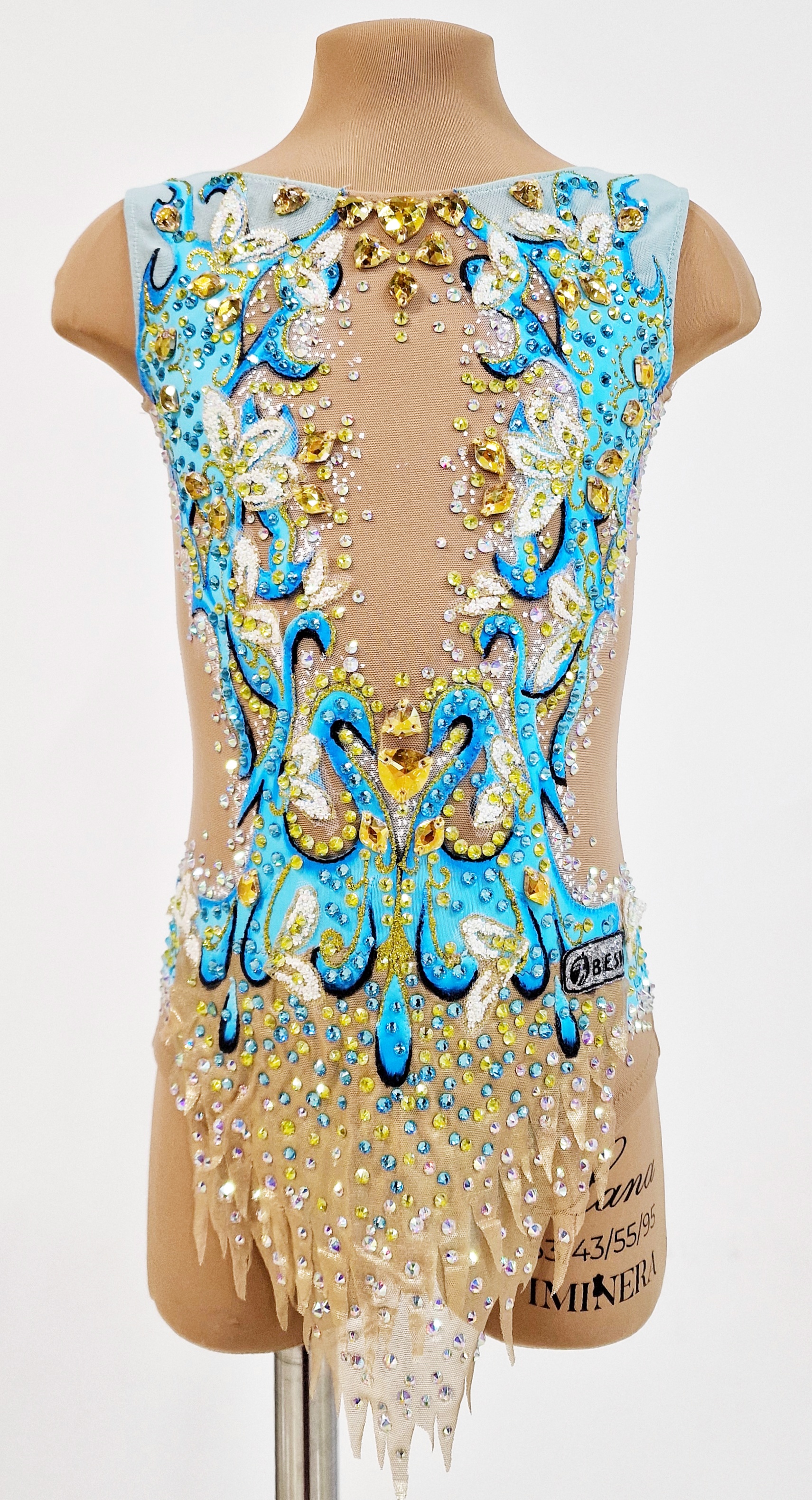 На купальнике использовано 2100 клеевых и 55 крупных пришивных страз.