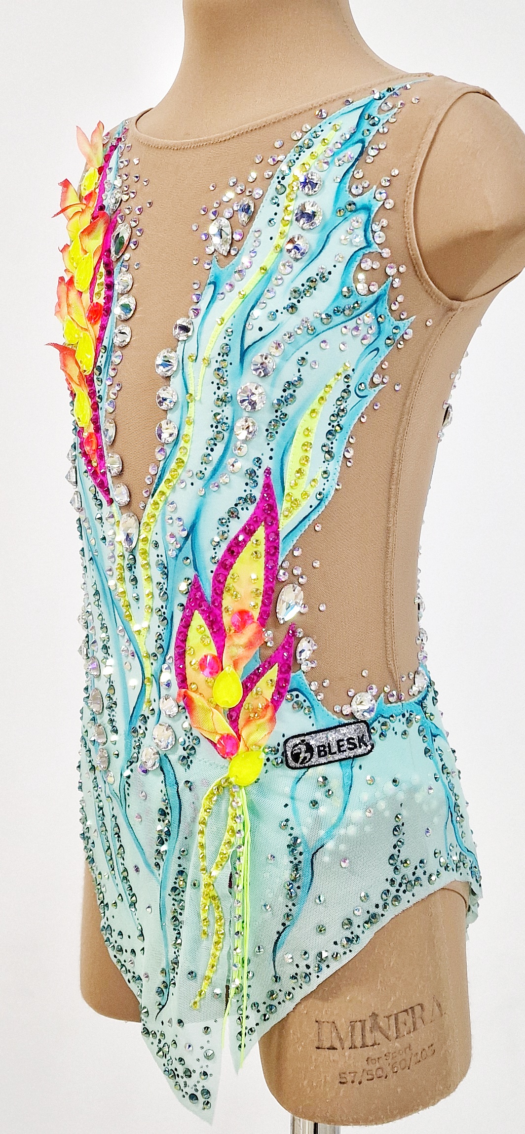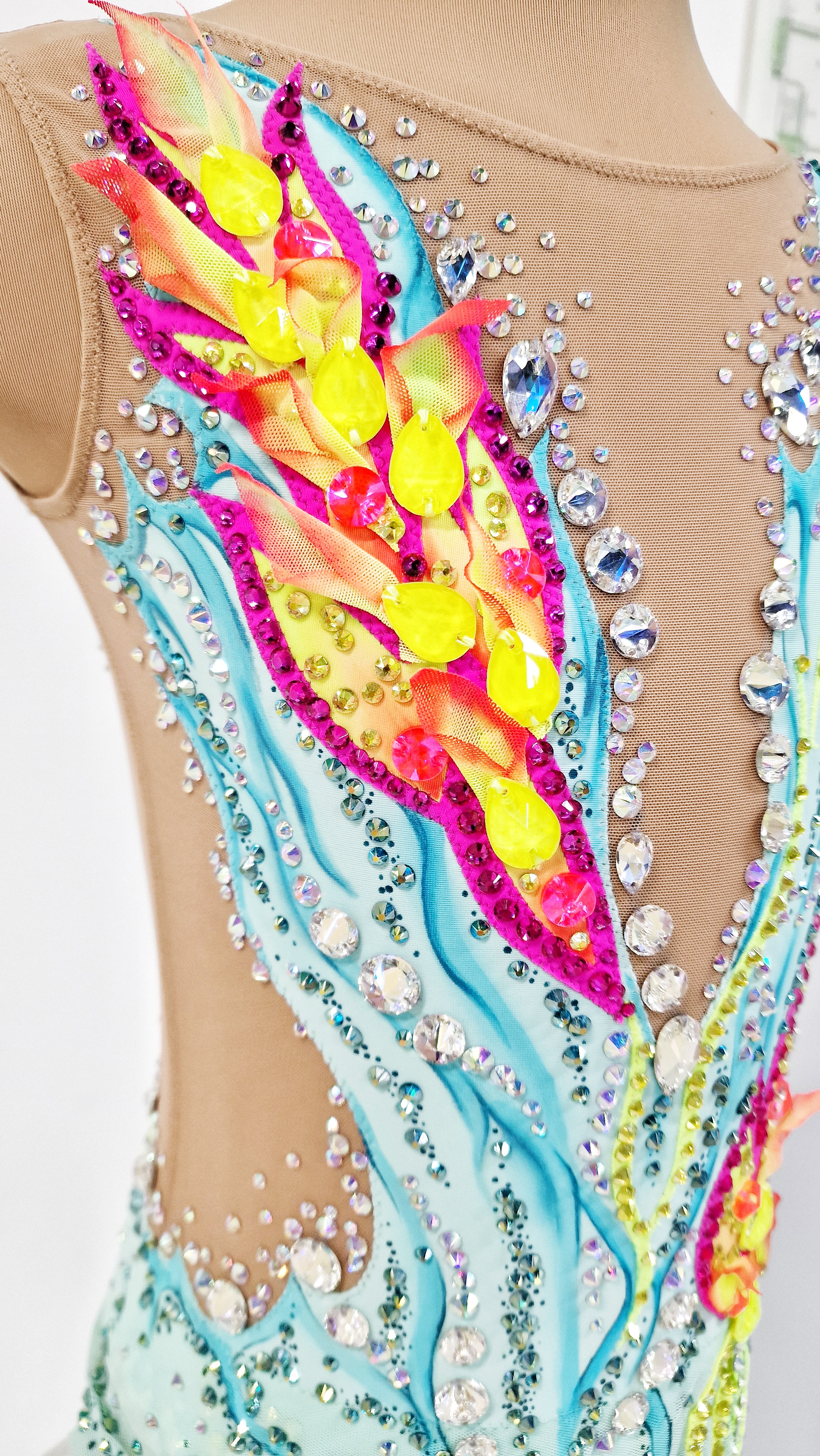 На купальнике использовано 2650 клеевых и 98 крупных пришивных страза.