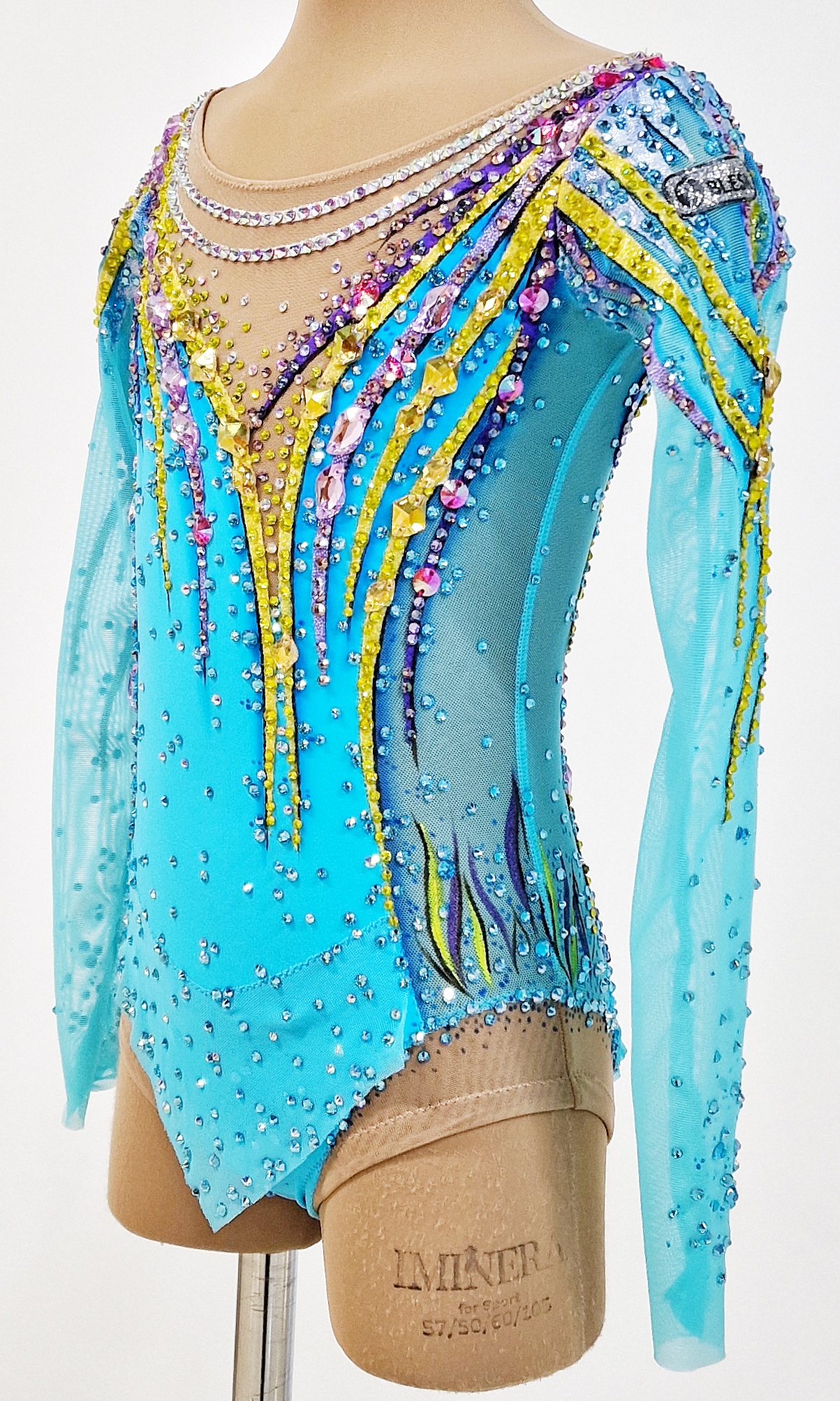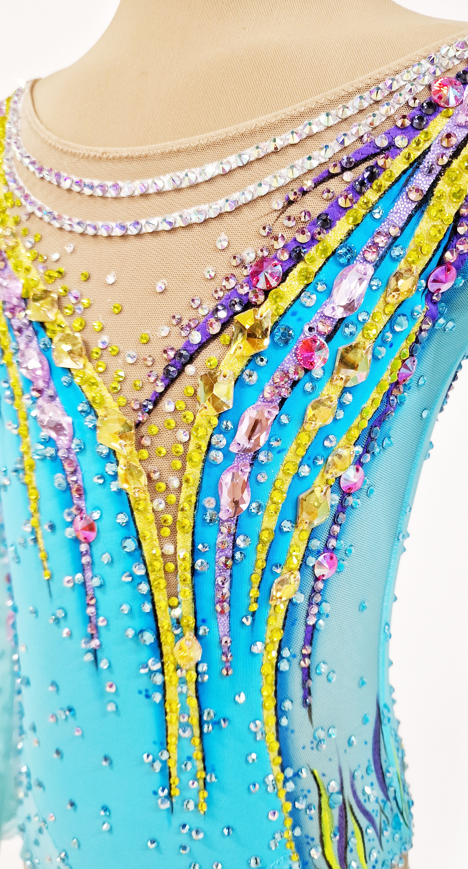 На купальнике использовано 2425 клеевых и 64 крупных пришивных страза.