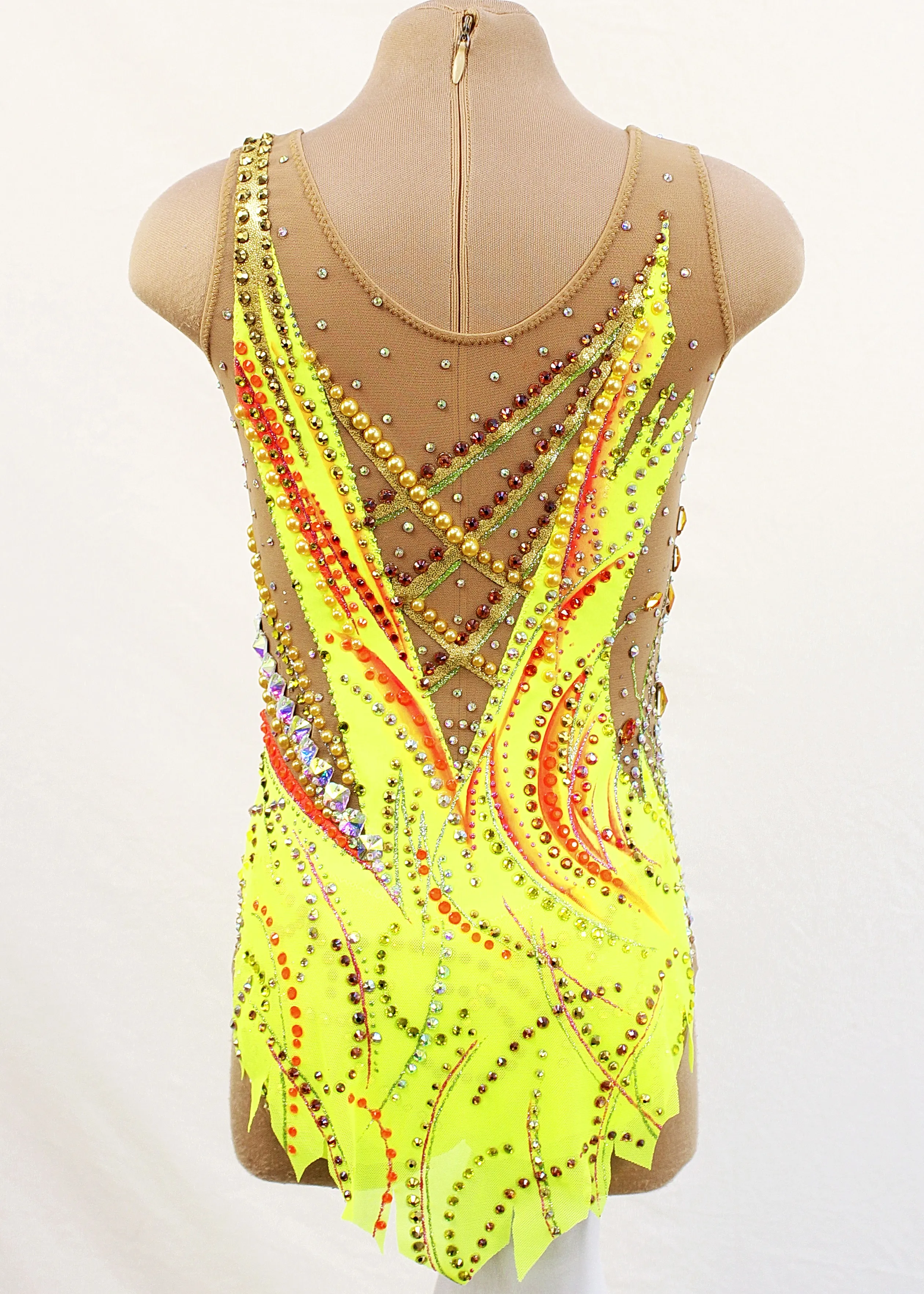 На купальнике использовано 1805 клеевых, 72 крупных пришивных страза и 200 жемчужин.