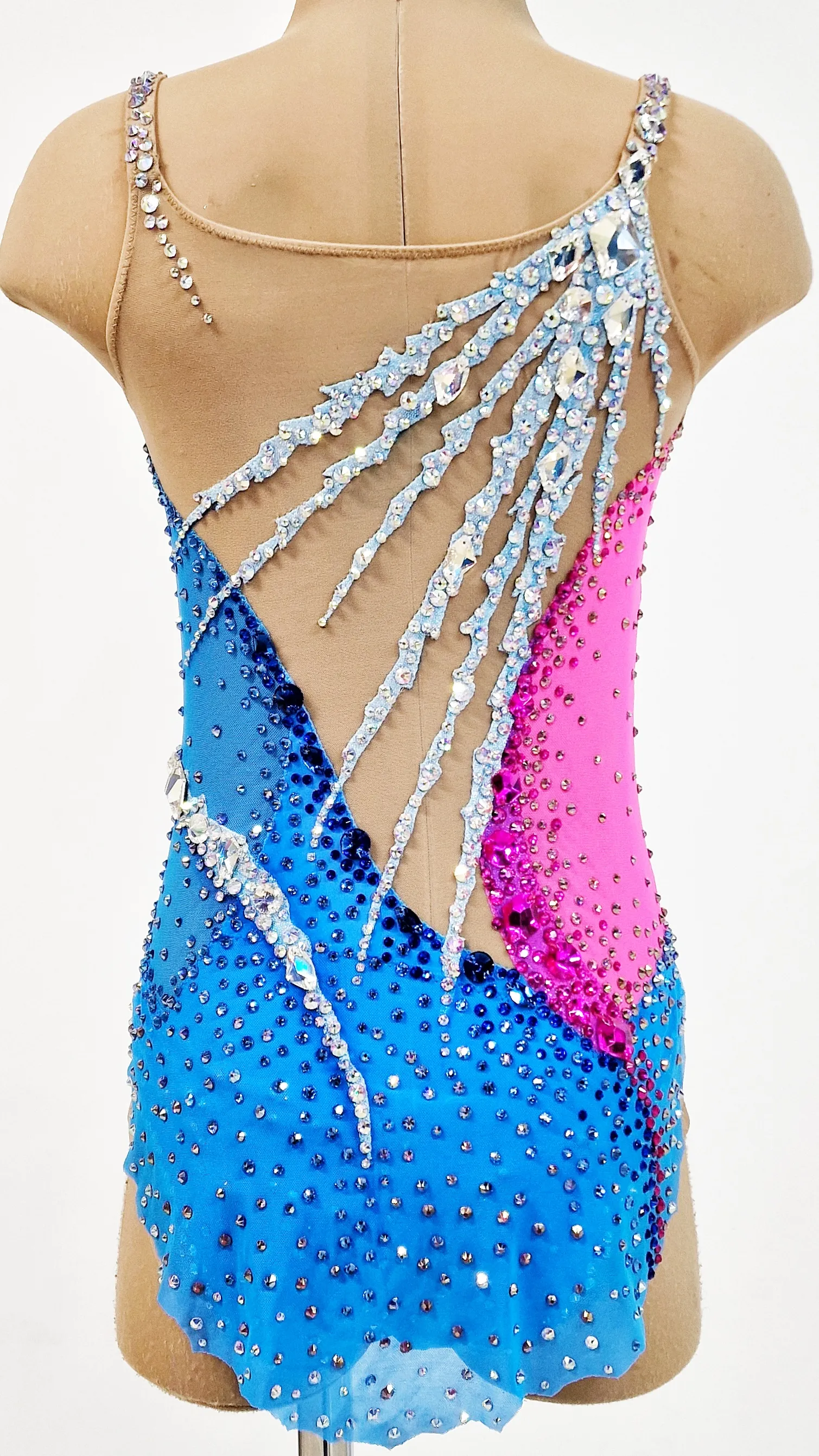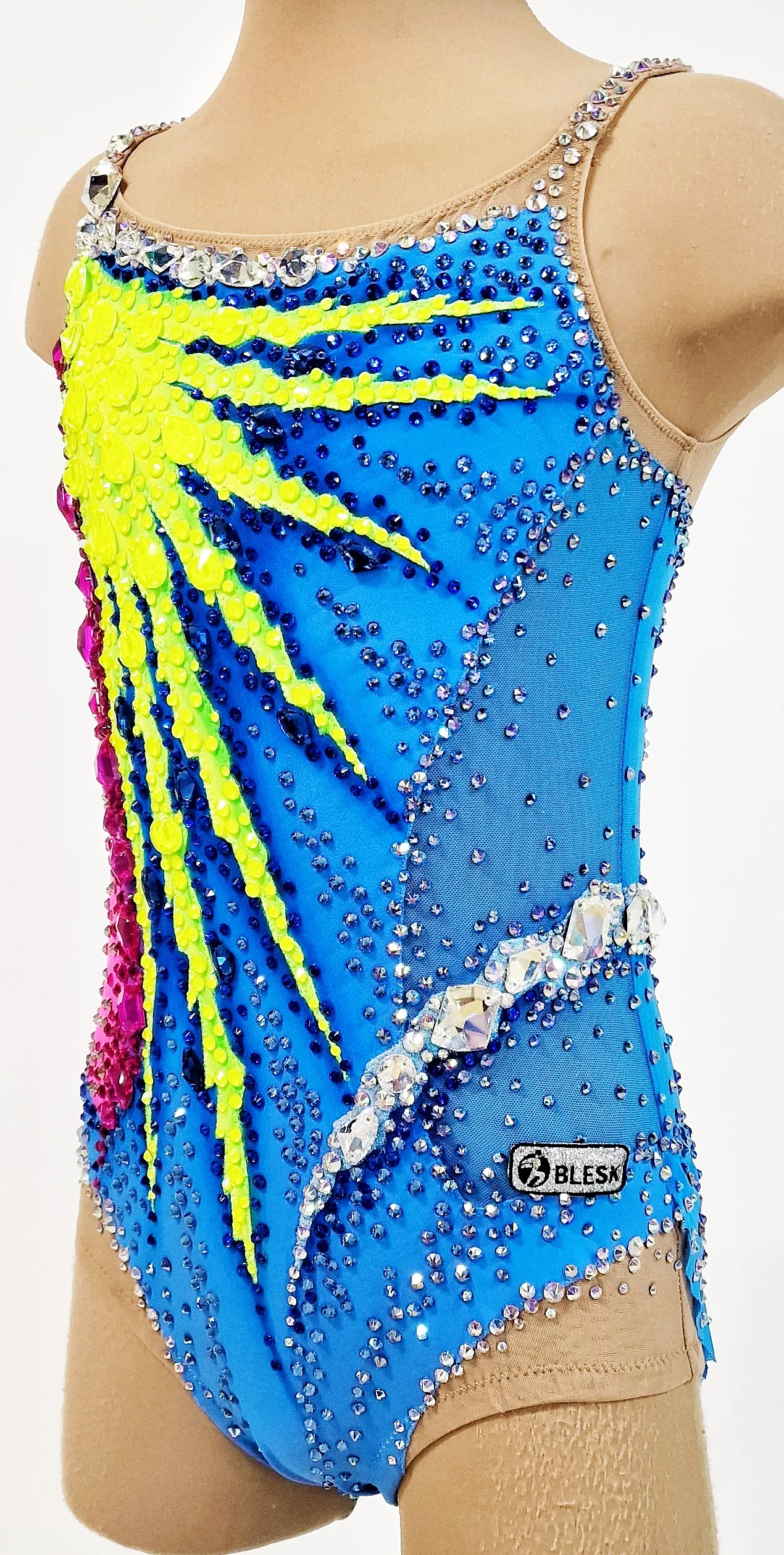 На купальнике использовано 3400 клеевых и 70 крупных пришивных страза.