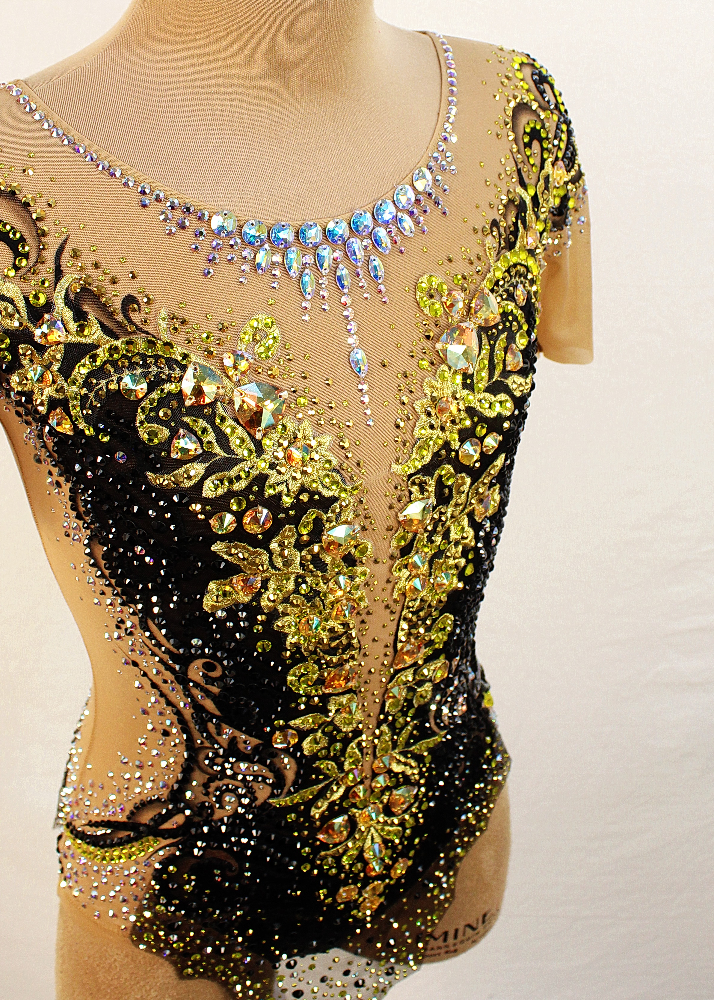 На купальнике использовано 4600 клеевых и 88 крупных пришивных страз.