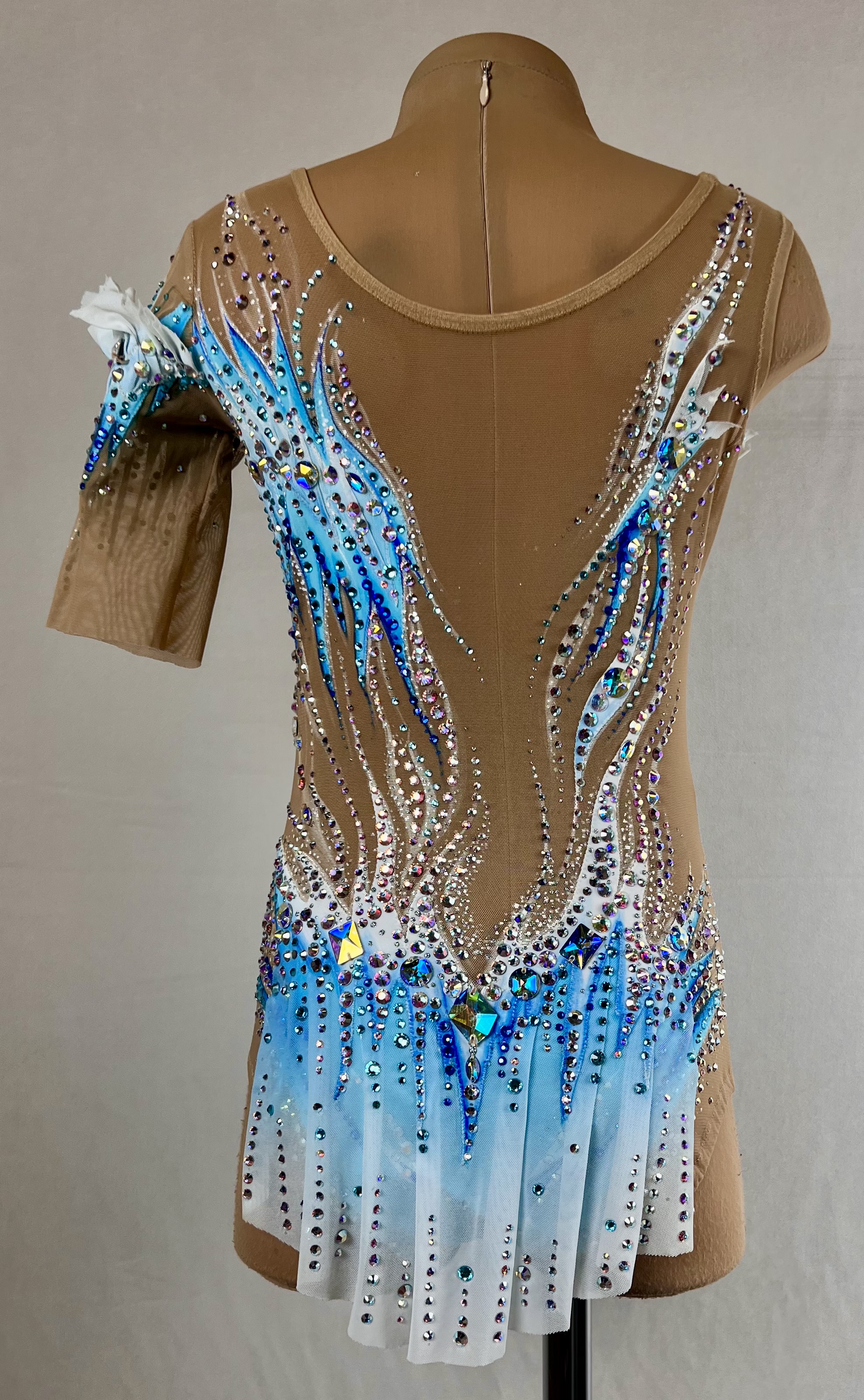 На рост 130-140 см, 32 размер, обхват груди 62-66 см, дуга 116-120 см.
