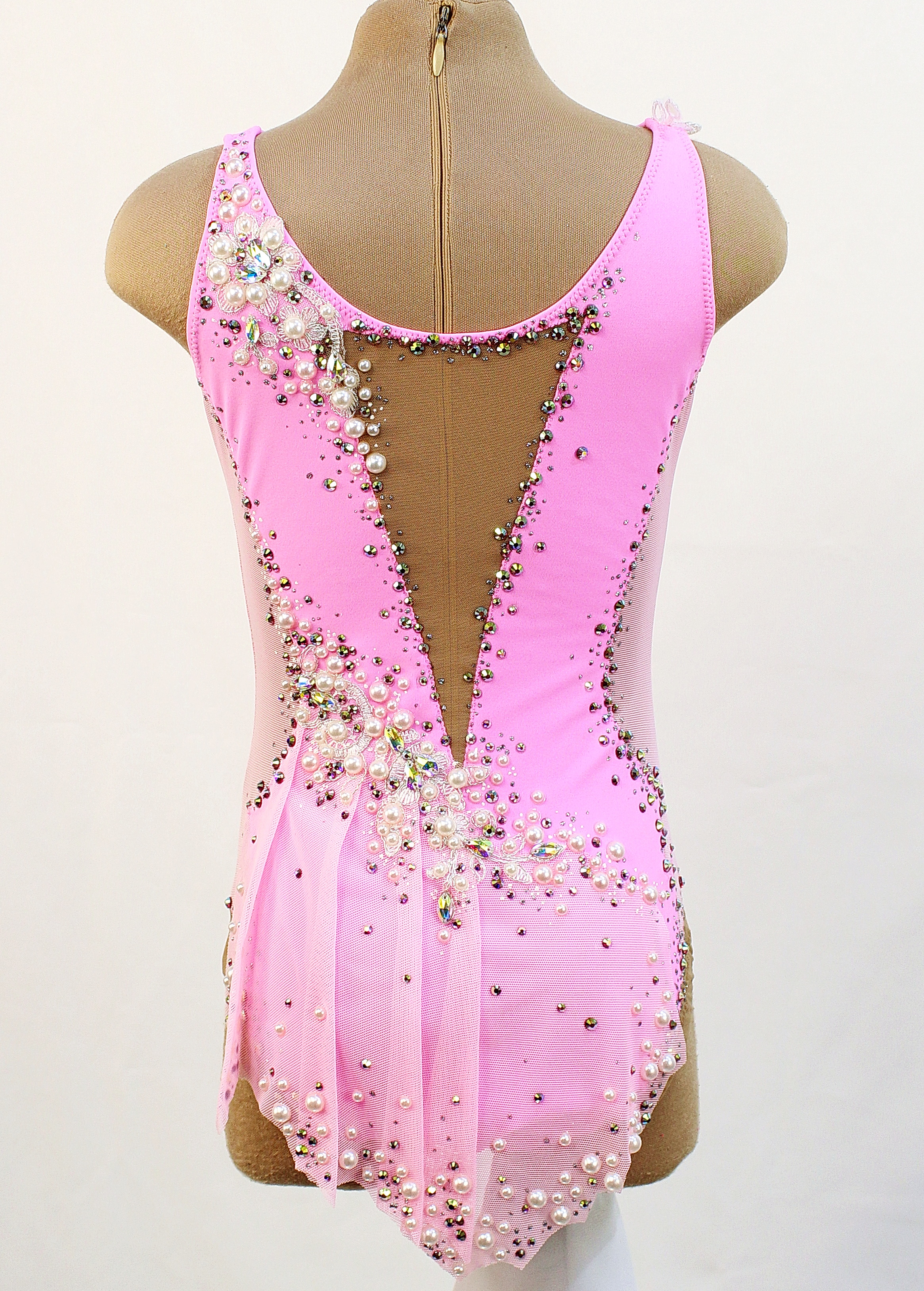 На купальнике использовано 600 клеевых страз, 30 крупных пришивных страз и 333 жемчужины.