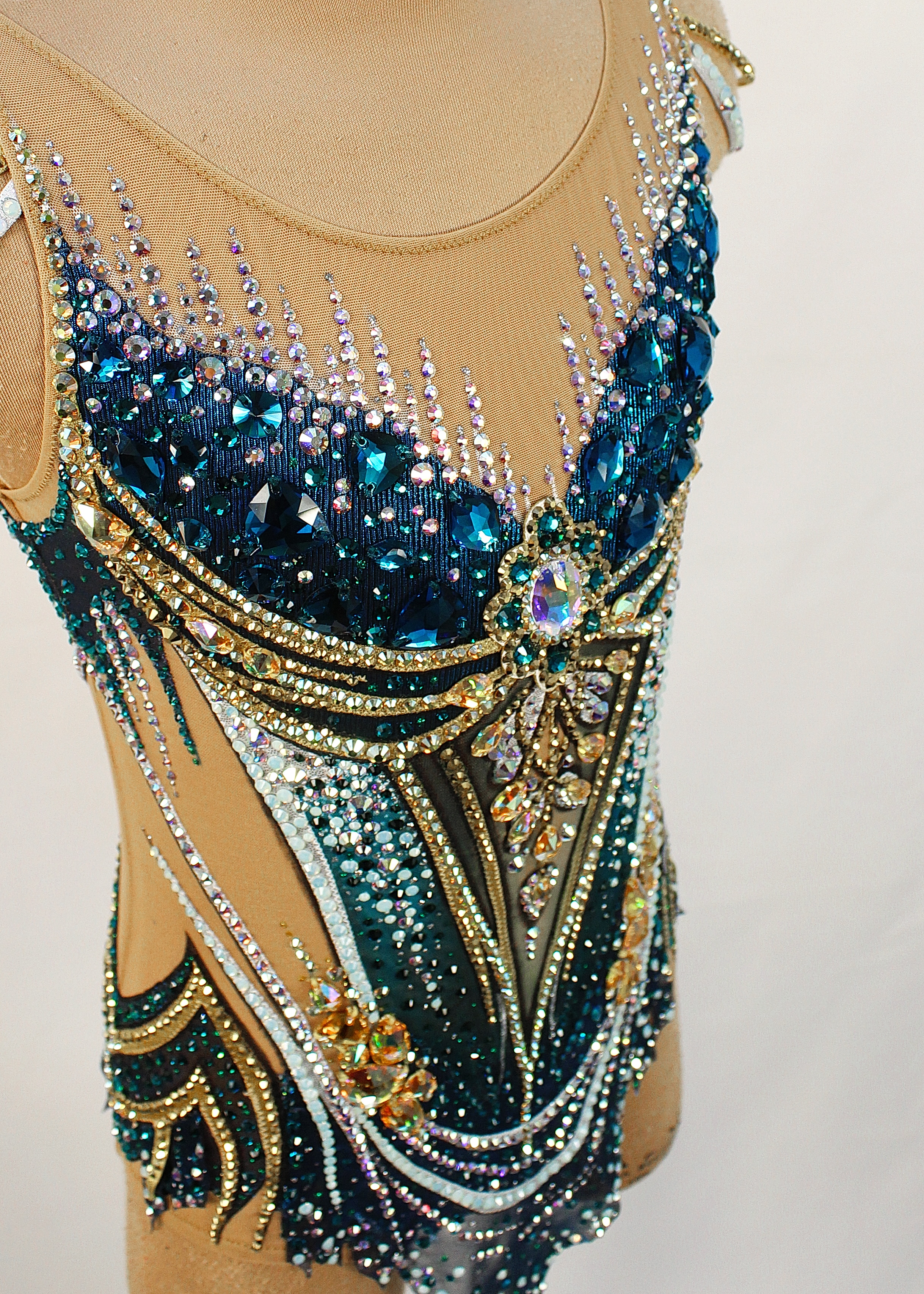 На купальнике использовано 5313 клеевых и 76 крупных пришивных страз.