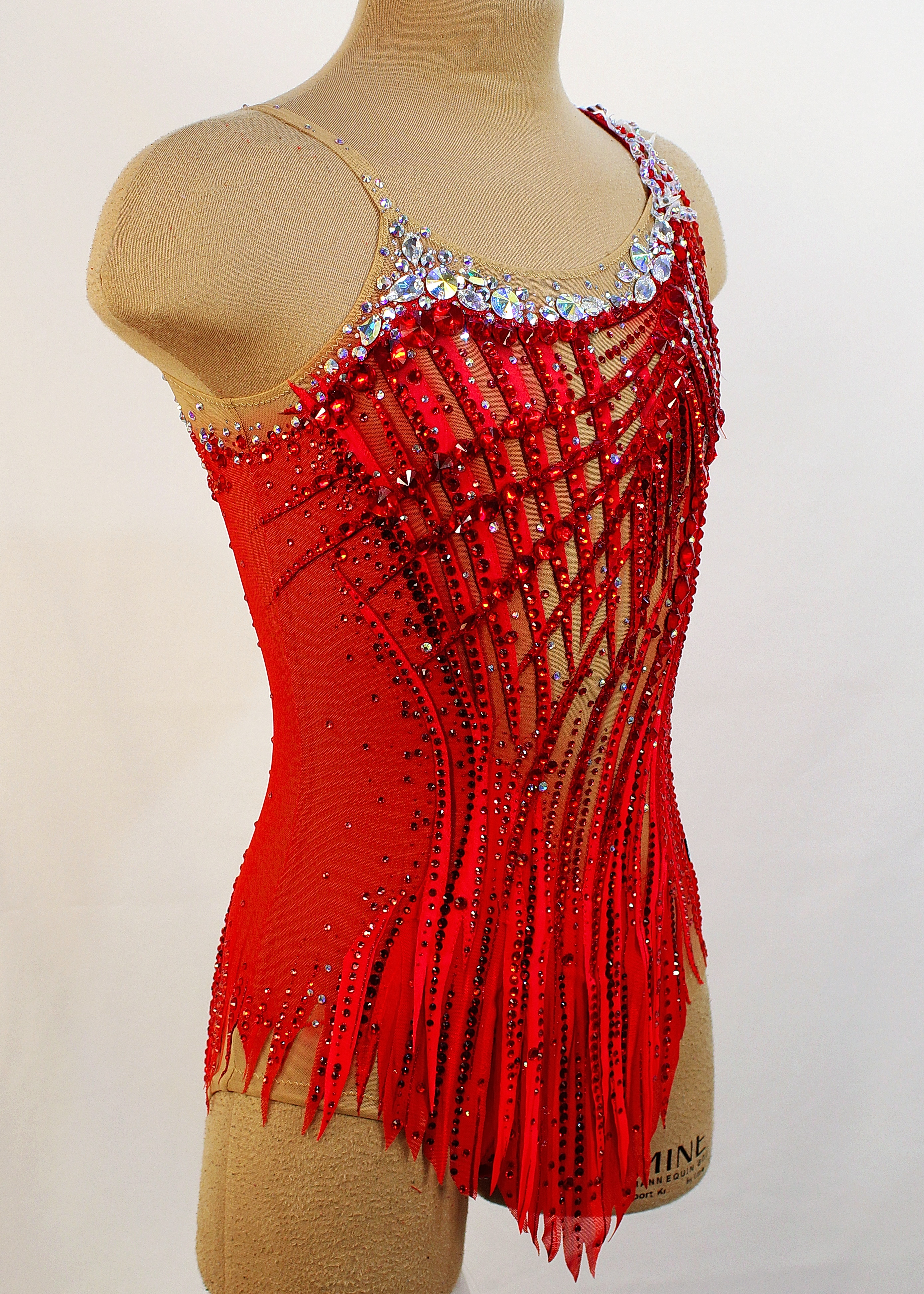 На купальнике использовано 4107 клеевых и 122 крупных пришивных страза.